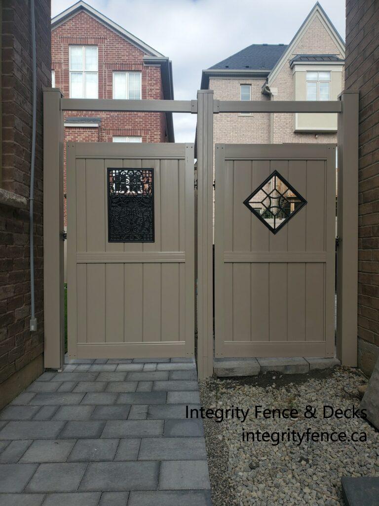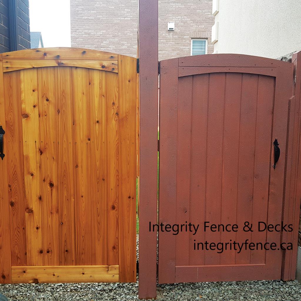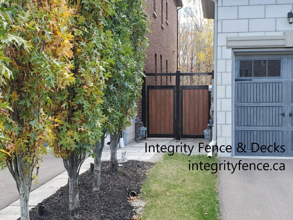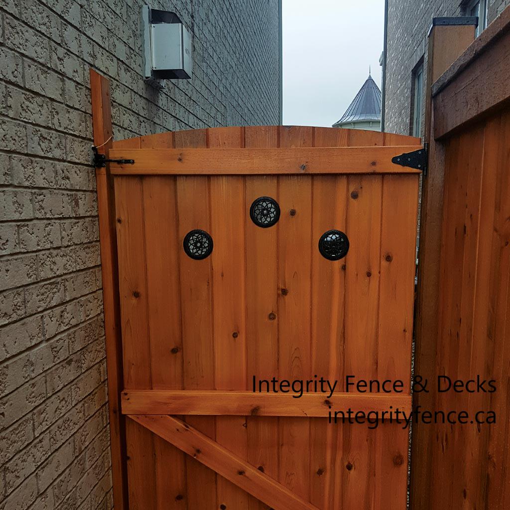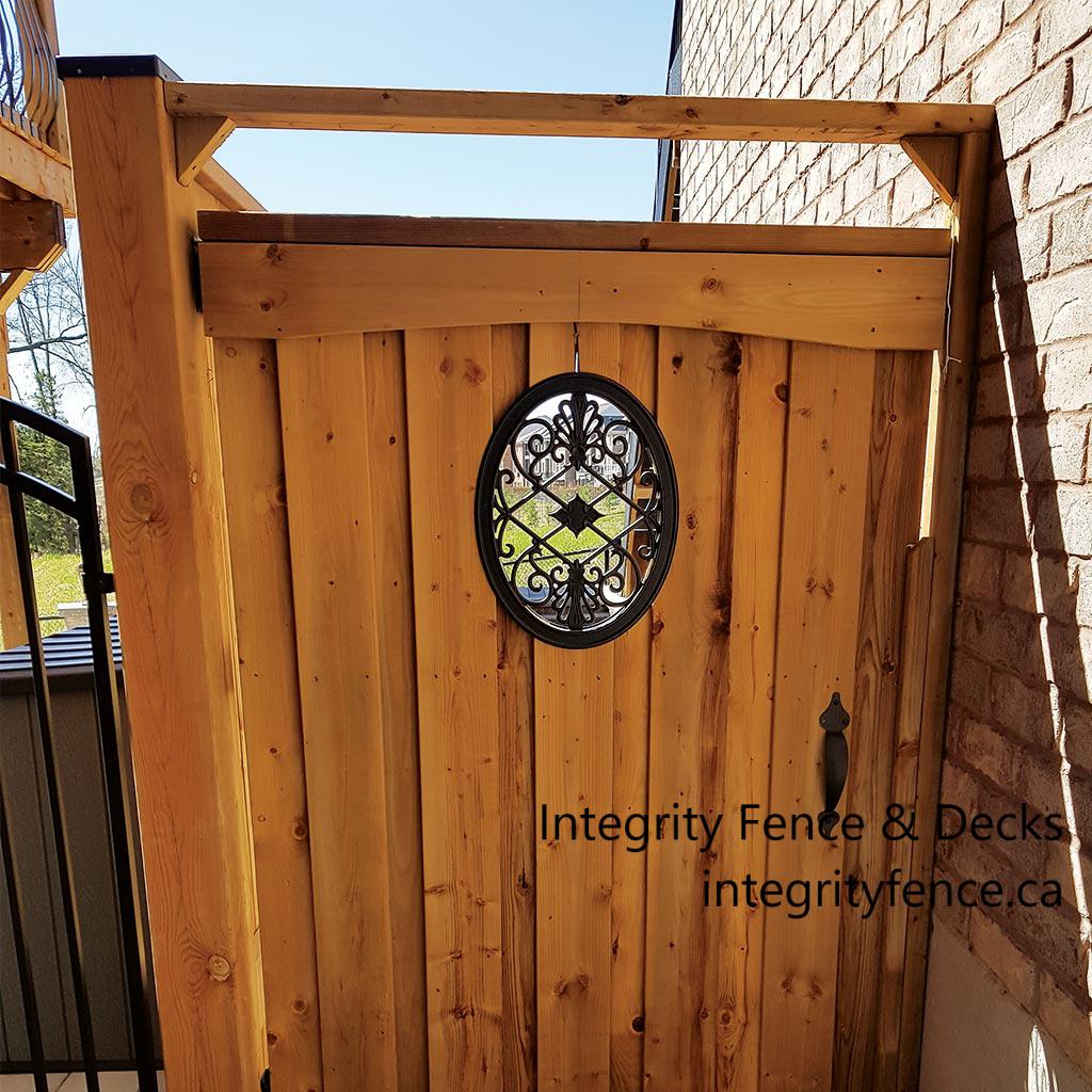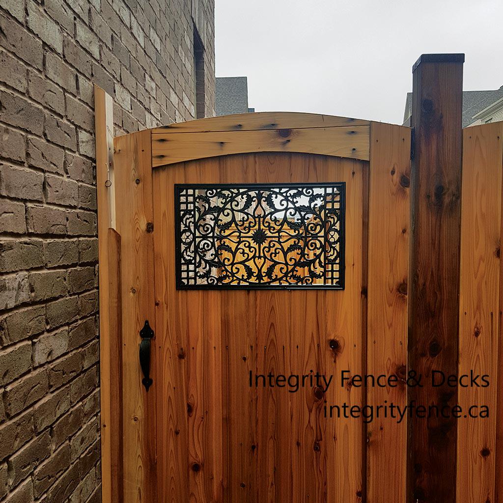 Similar to the fence, gates can be chosen from a wide variety of designs and materials, from single gates to double gates and upgrade gates with pergola. Our wood gates offer a traditional look, they can be embellished by an insert; insert also come in a variety of shapes and sizes. Visit our website gallery to see some of the styles.